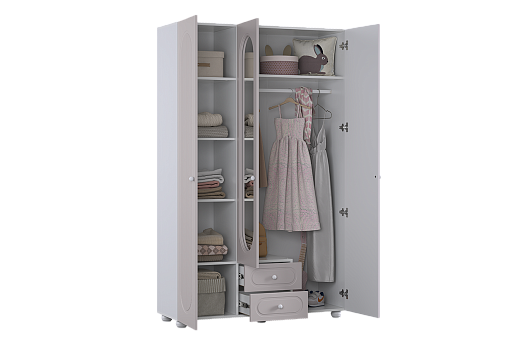 Шкаф трёхдверный Милана гармонично сочетается с другими модулями серии и подходит для создания удобной и функциональной системы хранения в детской комнате.