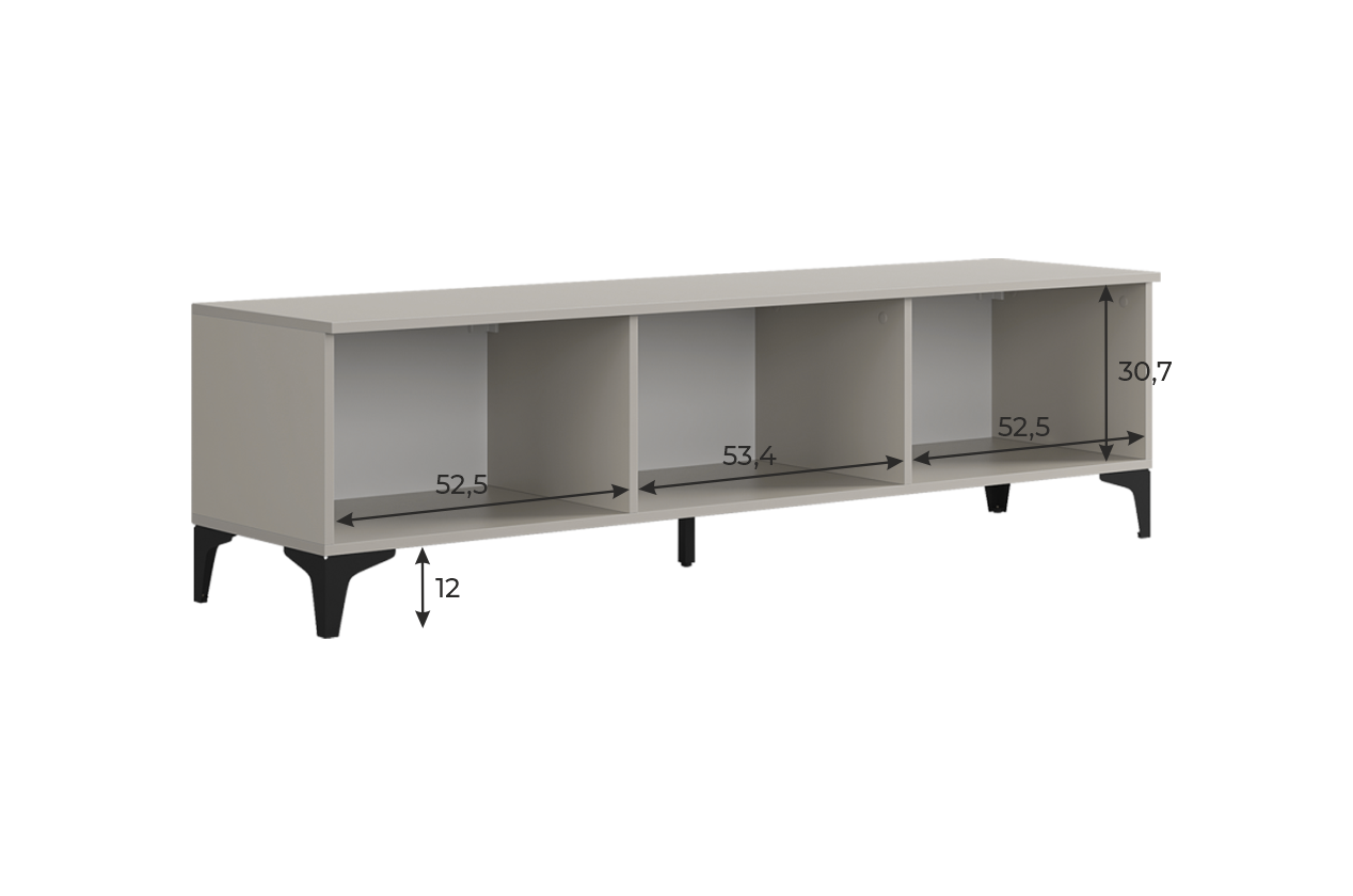 Тумба оснащена тремя распашными дверцами, которые открывают доступ к просторным внутренним полкам, идеально подходящим для хранения посуды, бытовой техники, аксессуаров или других предметов. Металлические ручки придают изделию современный вид и удобство в использовании.