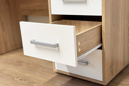 Стол Лайт-2 порадует вас не только своим внешним видом, но и функциональностью. Скругленные углы столешницы делают использование стола безопасным, а наличие выдвижных ящиков и удобных ниш делает его практичным. Отличное решение для школьного уголка или современного домашнего офиса.