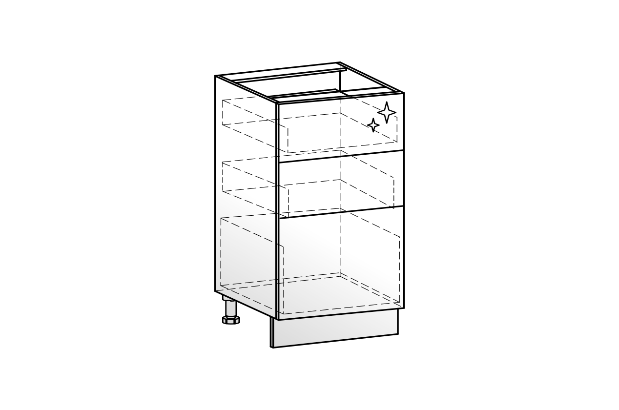 Рабочий шкаф с тремя выкатными ящиками из серии «Кристи», отлично подходит для хранения кастрюль, сковород, столовых приборов и кухонных принадлежностей. Эмалевый высокий глянец создаёт идеально ровную отражающую поверхность, делает кухню светлее и визуально увеличивает пространство. Фасады практичны в уходе — достаточно протирать их влажной салфеткой из микрофибры.