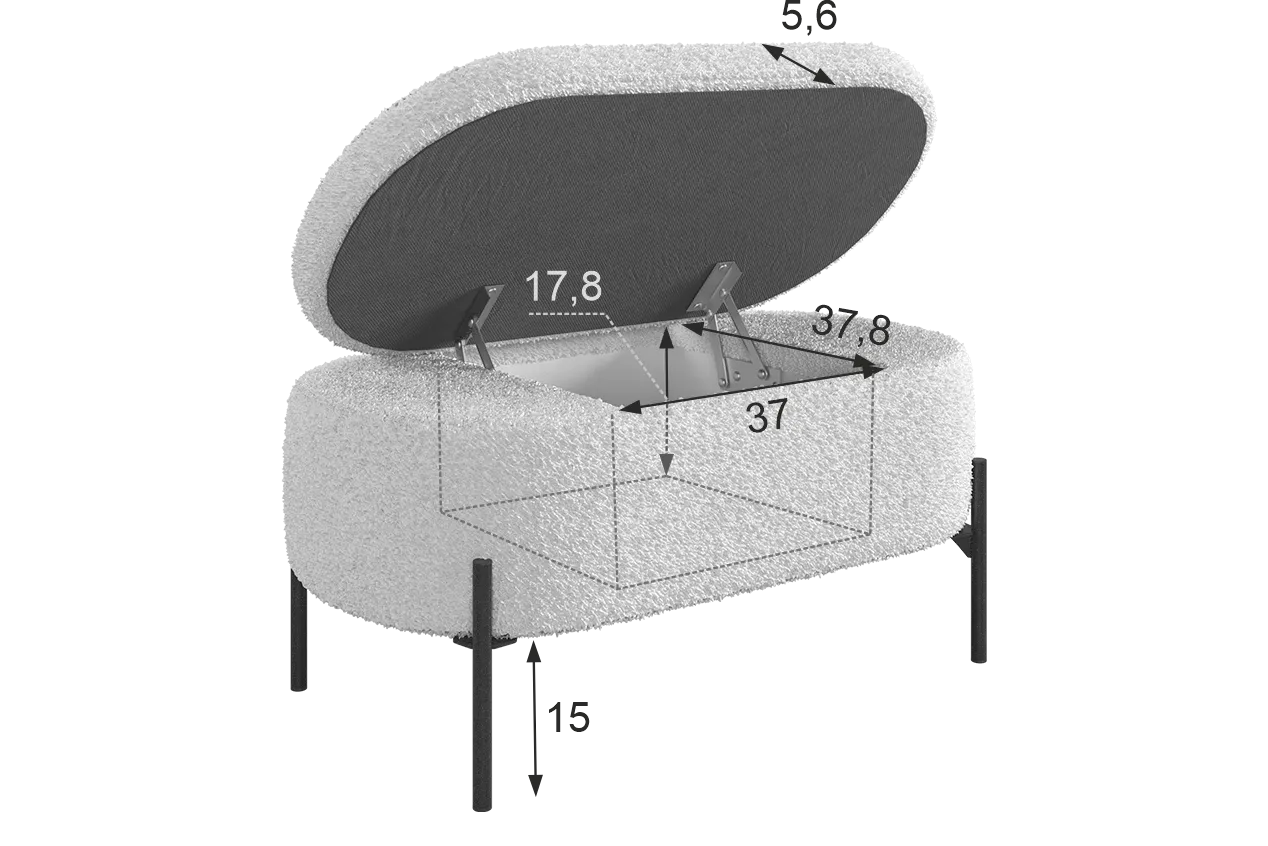 Внутри пуфа находится вместительное пространство для хранения, где вы можете разместить различные предметы, например, книги или косметику. Это делает пуф "Барни" не только удобным местом для отдыха, но и практичным элементом интерьера.