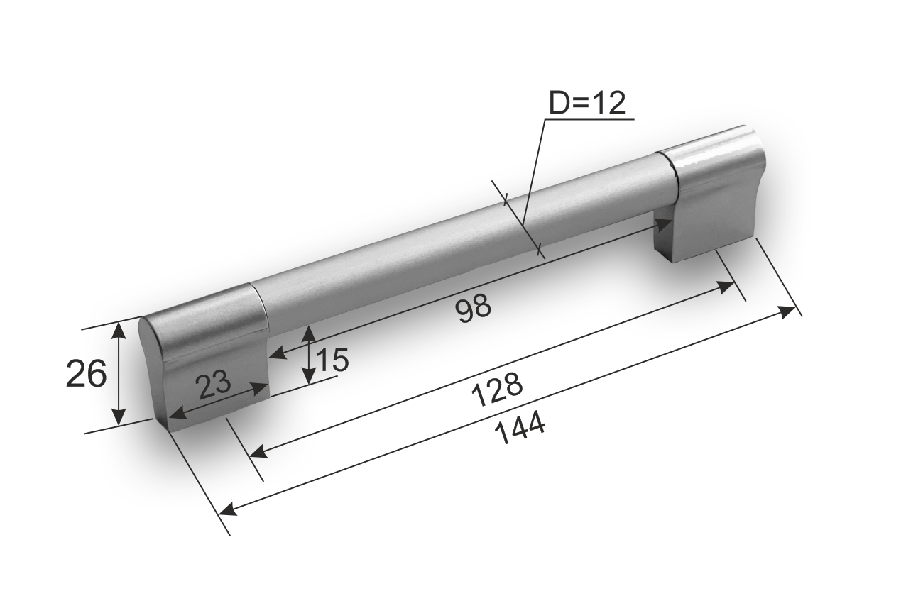 Ручка 0006 (128) хром матовый/хром из каталога Кухонные ручки купить в Нижний Новгороде в магазине мебели онлайн Мебельсон по цене 90 ₽