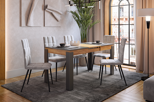 Стол обеденный раздвижной Гермес 2 графит/дуб крафт золотой из каталога Обеденные столы купить в Нижний Новгороде в магазине мебели онлайн Мебельсон по цене 11 990 ₽