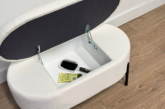 Внутри пуфа находится вместительное пространство для хранения, где вы можете разместить различные предметы, например, книги или косметику. Это делает пуф "Барни" не только удобным местом для отдыха, но и практичным элементом интерьера.
