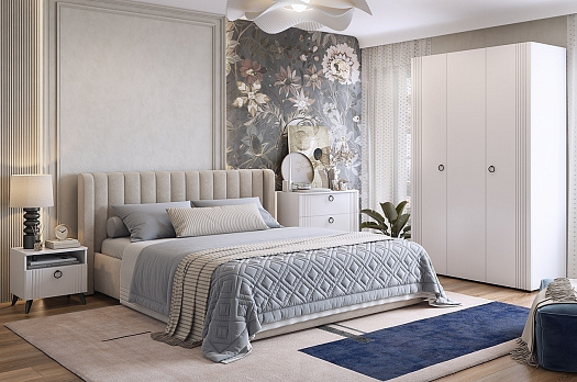 Корпус шкафа выполнен из прочного и надежного материала - ламинированной ДСП белого дерева, а фасады из качественного МДФ, покрытого матовой пленкой ПВХ белого цвета. Уникальная декоративная фрезеровка на вертикальных полосах фасада придает шкафу изысканный вид.