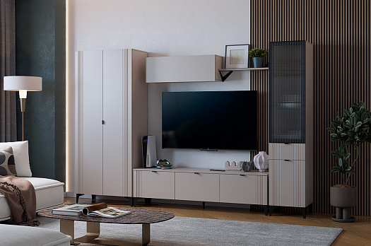 Гостиная "Рич К4" (2850х420х1900 мм) кашемир/фрапучино матовый/черный из каталога Модульные гостиные купить в Нижний Новгороде в магазине мебели онлайн Мебельсон по цене 70 550 ₽